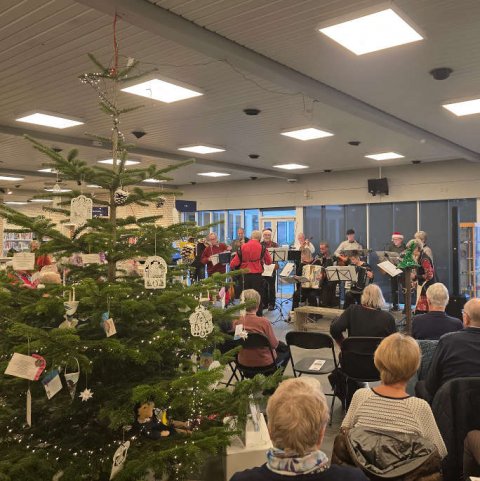 For tredje år i træk har Folk og Fæ givet en julekoncert i Rønnes bibliotek, arrangeret af Ældresagen. Det var en blanding af koncert numre, fælles sang og nogle sjove Bornholmske skitse opført af Lisbeth Lind og Bente Pedersen.